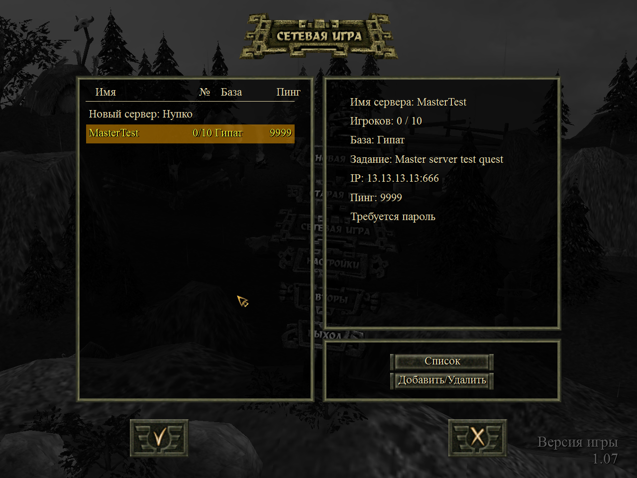 до установки вашего патча я видел созданные игры. теперь не вижу ничего кроме пустого и запароленного мастерсервера.